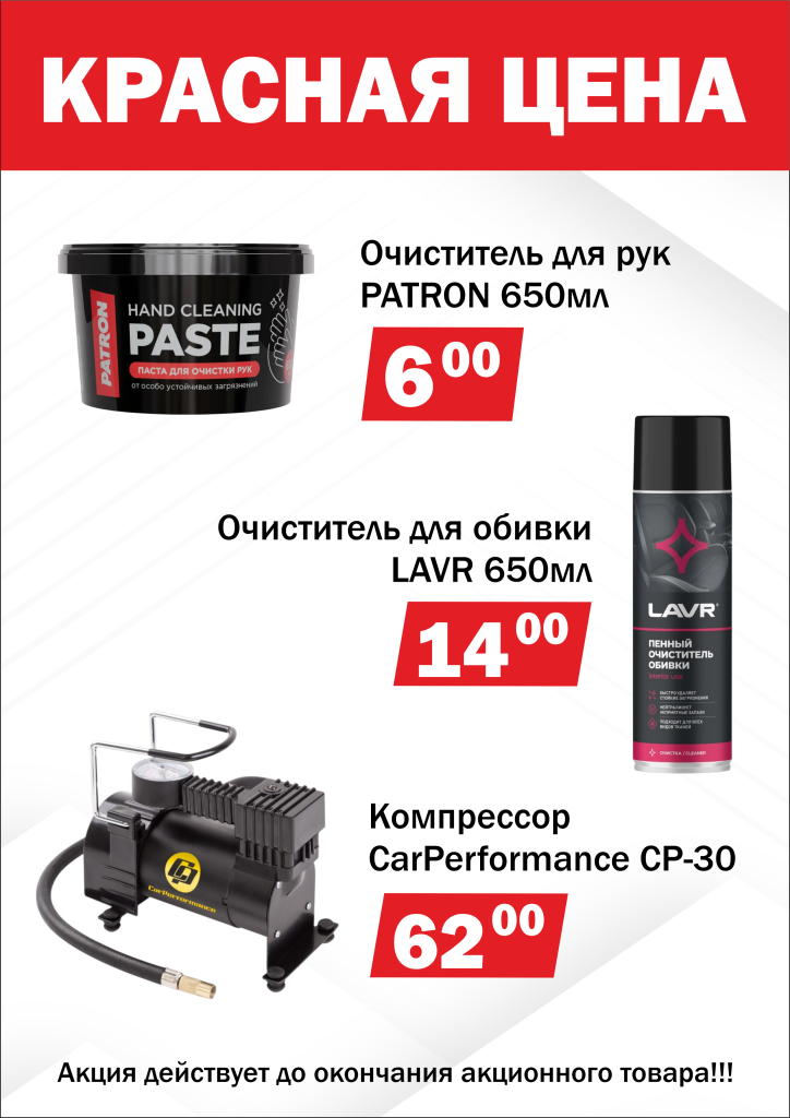 Сеть магазинов «ИнтерАвто» объявляет специальную акцию «Красная цена»! Мы снизили цены на три популярных товара, чтобы вы могли ухаживать за своим автомобилем с максимальной выгодой.